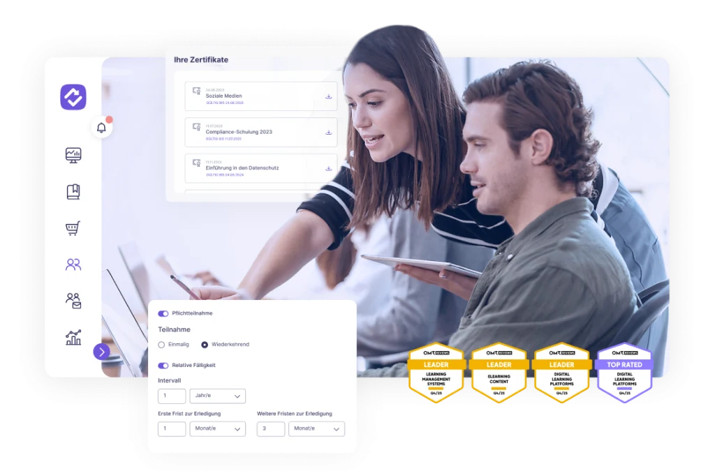Compliance Management einfach gemacht – mit der reteach Compliance Suite Die #1 Lösung für den deutschen Mittelstand: 40+ Schulungen in 20 Sprachen sofort startklar, automatisiert & rechtssicher – ohne IT-Aufwand. Jetzt beraten lassen Compliance auf Knopfdruck – erfolgreich bei Unternehmen im Einsatz So entlastet reteach den Mittelstand im Compliance Management Die reteach Compliance Suite ist Ihr zentrales System für alle Compliance Schulungen im Unternehmen. Statt unübersichtlicher Excel-Listen oder Aktenordnern behalten Sie mit einem Klick den Überblick: Wer wurde geschult? Welche Zertifikate laufen ab? Wo besteht Handlungsbedarf? Mit 40+ sofort einsetzbaren Kursen in 20 Sprachen deckt reteach grundlegende Compliance-Schulungen ab – von Datenschutz über Arbeitsschutz bis Informationssicherheit. Kombinieren Sie vorgefertigte Inhalte mit eigenen Kursen und schaffen Sie Compliance Management, das perfekt zu Ihrem Unternehmen passt. Jetzt beraten lassen Warum reteach die richtige Wahl für Compliance Management ist Bis zu 69% Kosten sparen Mit den digitalen Pflichtschulungen unserer Compliance Suite sparen Sie im Schnitt 69% der Kosten gegenüber Präsenzschulungen. Sie reduzieren Lernzeiten, vermeiden Reisekosten und minimieren den Verwaltungsaufwand – ein klarer ROI ab Tag 1 für jedes Unternehmen. Rechtssicherheit & Effizienz – 100% compliant Jede Schulung, jeder Nachweis, jede Erinnerung: Alles läuft automatisch und auditfest. Die Plattform erfüllt sämtliche gesetzlichen Anforderungen und unterstützt alle Rollen, Bereiche und Standorte – vom Produktionsteam bis zum Management. Jetzt beraten lassen Schneller Start ohne IT-Aufwand Starten Sie innerhalb von 24 Stunden mit Ihrem digitalen Compliance Management System – ganz ohne technische Vorkenntnisse oder komplexe Implementierung.Bei Fragen steht Ihnen unser deutschsprachiger Support jederzeit persönlich zur Seite. Das beinhaltet die reteach Compliance Suite Sofort startklar: LMS mit 40+ fertigen Compliance Kursen in 20 Sprachen Vollautomatisiert: Compliance-Workflow sorgt für automatische Erinnerungen, Fristen & Zertifikate mit Ablaufdatum – entlastet HR und QM Flexibel & anpassbar: Schulungen auf Knopfdruck individualisieren (z. B. eigene Brandschutzpläne) Analyse-Dashboard: Alle Dokumente & Nachweise jederzeit abrufbar – für Compliance auf Knopfdruck Jetzt beraten lassen 40+ Kurse: Alle wichtigen Compliance-Themen abgedeckt Compliance & Datenschutz Mehr erfahren Arbeitsschutz & Sicherheit Mehr erfahren Informations- sicherheit Mehr erfahren Compliance-Workflow – automatisiert planen, zuweisen & erinnern Mit dem Compliance-Workflow behalten Sie alle Vorgaben im Griff: Termine und Fristen werden zentral festgelegt, Pflichtteilnahmen klar geregelt und Erinnerungen automatisch versendet. Auch wiederkehrende Schulungen lassen sich problemlos einplanen, während Ablaufdaten für Zertifikate zuverlässig überwacht werden. So sparen Sie wertvolle Zeit, stellen Rechtskonformität sicher und vermeiden manuelle Fehler. Mehr erfahren Überzeugen Sie sich selbst! Digitalisieren Sie Ihre Pflichtschulungen – einfach, effizient und rechtssicher. Jetzt beraten lassen Mehr Wissen rund um digitales Compliance Management Blogbeitrag Kosten sparen mit digitaler Compliance Schulung für Mitarbeiter Jetzt lesen Whitepaper Benchmark-Report: Digitales Lernen im Mittelstand 2026 Jetzt herunterladen Case Study Wie Wirthwein mit digitalen Schulungen wertvolle Zeit spart Jetzt lesen Das sagen unsere Kunden Mit unserem umfangreichen Kursangebot schulen wir unsere Mitarbeitenden in alltäglichen sowie modernen Themen wie dem Datenschutz – optimal, schnell und einfach digital. Michael Gerland Stellvertretender Leiter Werkfeuerwehr Mit reteach können wir das Team in Deutschland sowie international zu wichtigen Arbeitsschutzthemen flexibel schulen. So haben unsere Mitarbeitenden die Möglichkeit, sich in ihrem eigenen Tempo und ohne Sprach- oder Terminkonflikte fortzubilden. Dana Schenk Manager Human Resources Der Kurskatalog nimmt uns eine Menge Arbeit ab, da wir aus vorgefertigten Schulungen wählen und zusätzlich unsere eigenen Schulungen einmalig aufnehmen und beliebig oft wiederverwenden können. Tim Bönders Geschäftsführender Gesellschafter Dank der einfachen Administration, der automatischen Erinnerungen und dem übersichtlichen Analyse-Dashboard fällt es uns leicht, bei jährlichen Pflichtunterweisungen den Überblick zu behalten. Jaqueline Schiffert Personalreferentin Dank reteach konnten wir Unterweisungen mühelos automatisieren, was Zeit und Ressourcen spart und uns einen klaren Überblick verschafft. Die automatische Zertifikatvergabe entlastet uns zusätzlich. Christian Georgi COO